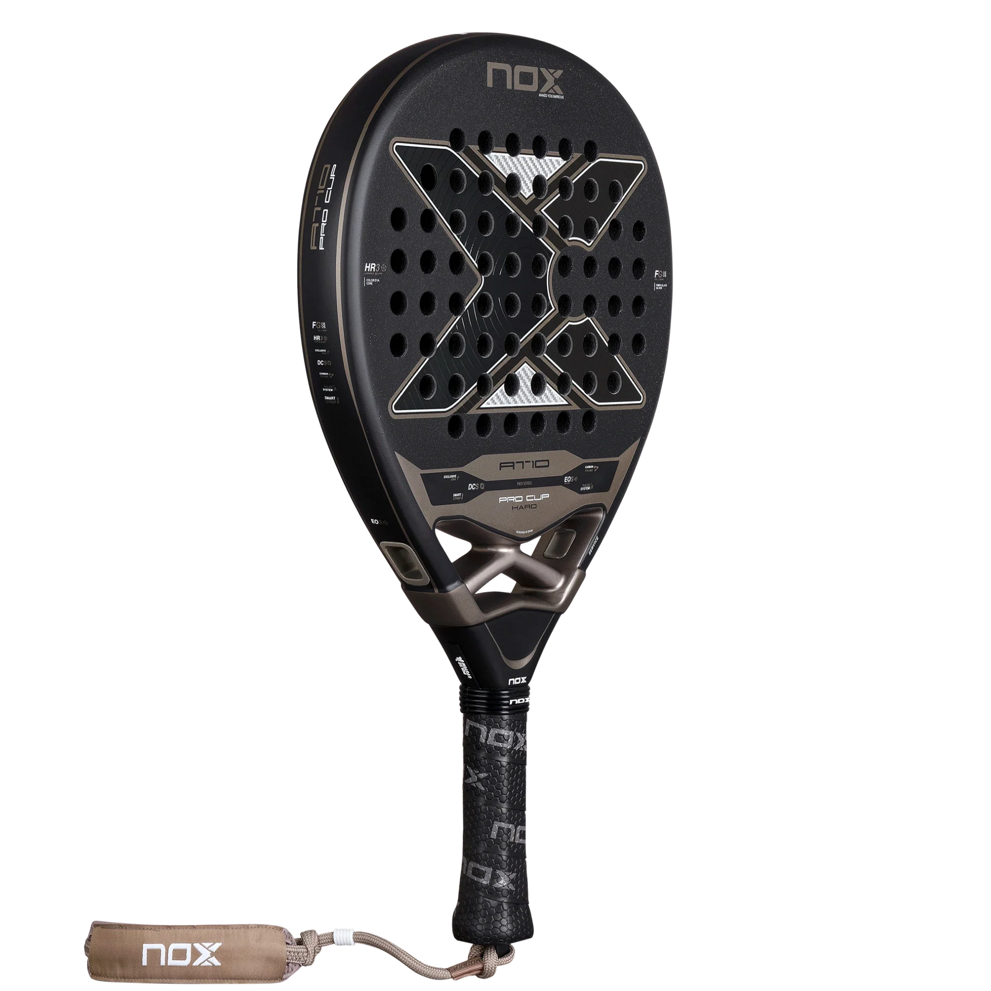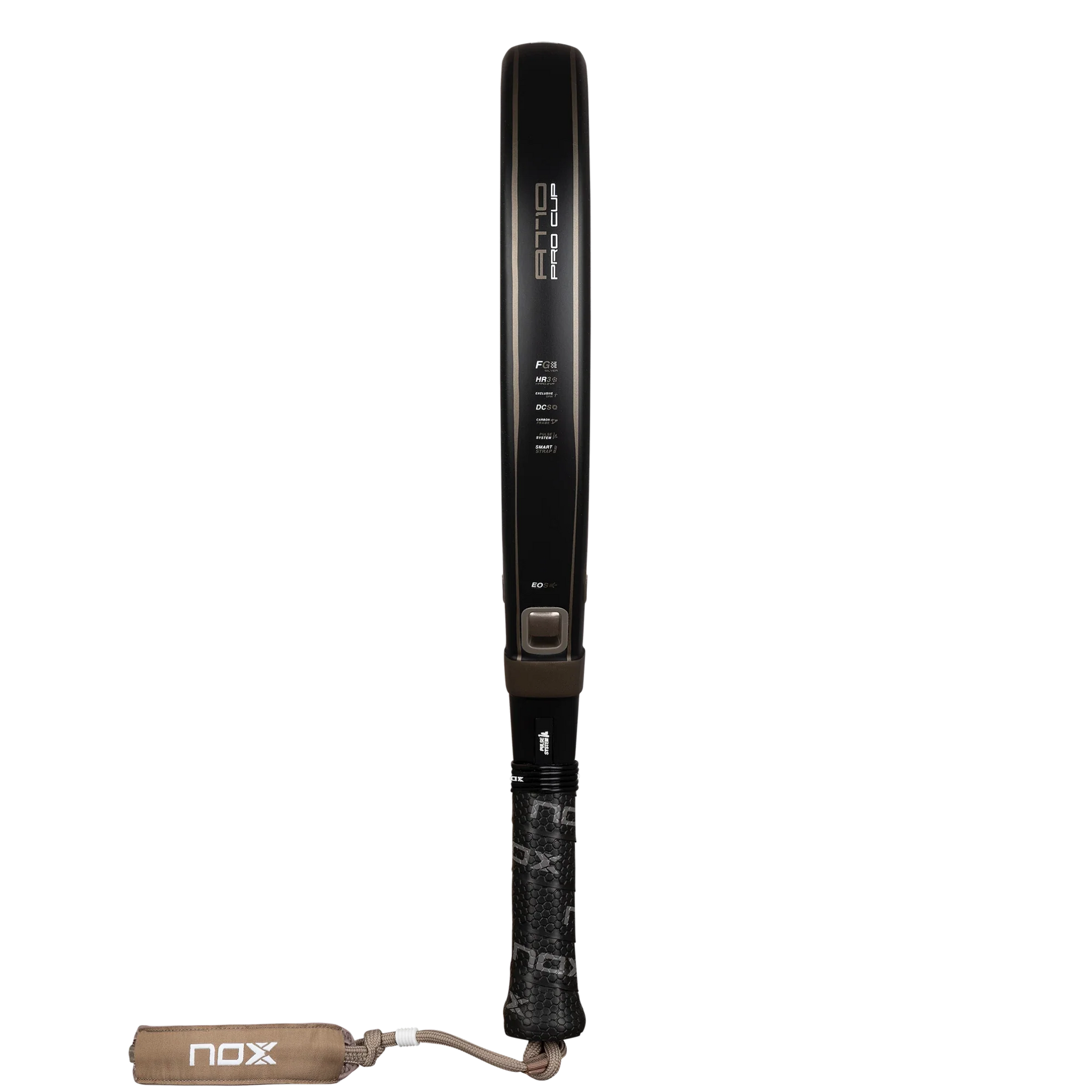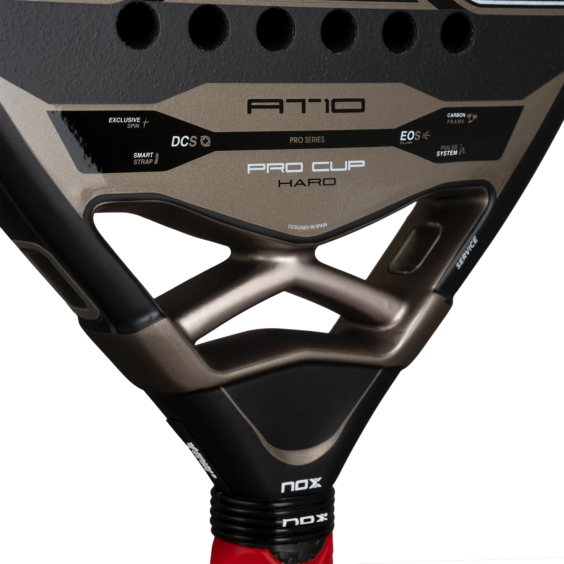 The new Nox AT10 Pro Cup HARD 2026 updates its design while maintaining the essence of an iconic racket, now featuring the mould used by Agustín Tapia in 2025. It incorporates the latest high-performance innovations such as the EOS Flap, which enhances aerodynamics and manoeuvrability, and the Pulse System, which reduces vibrations for a more comfortable and stable game.