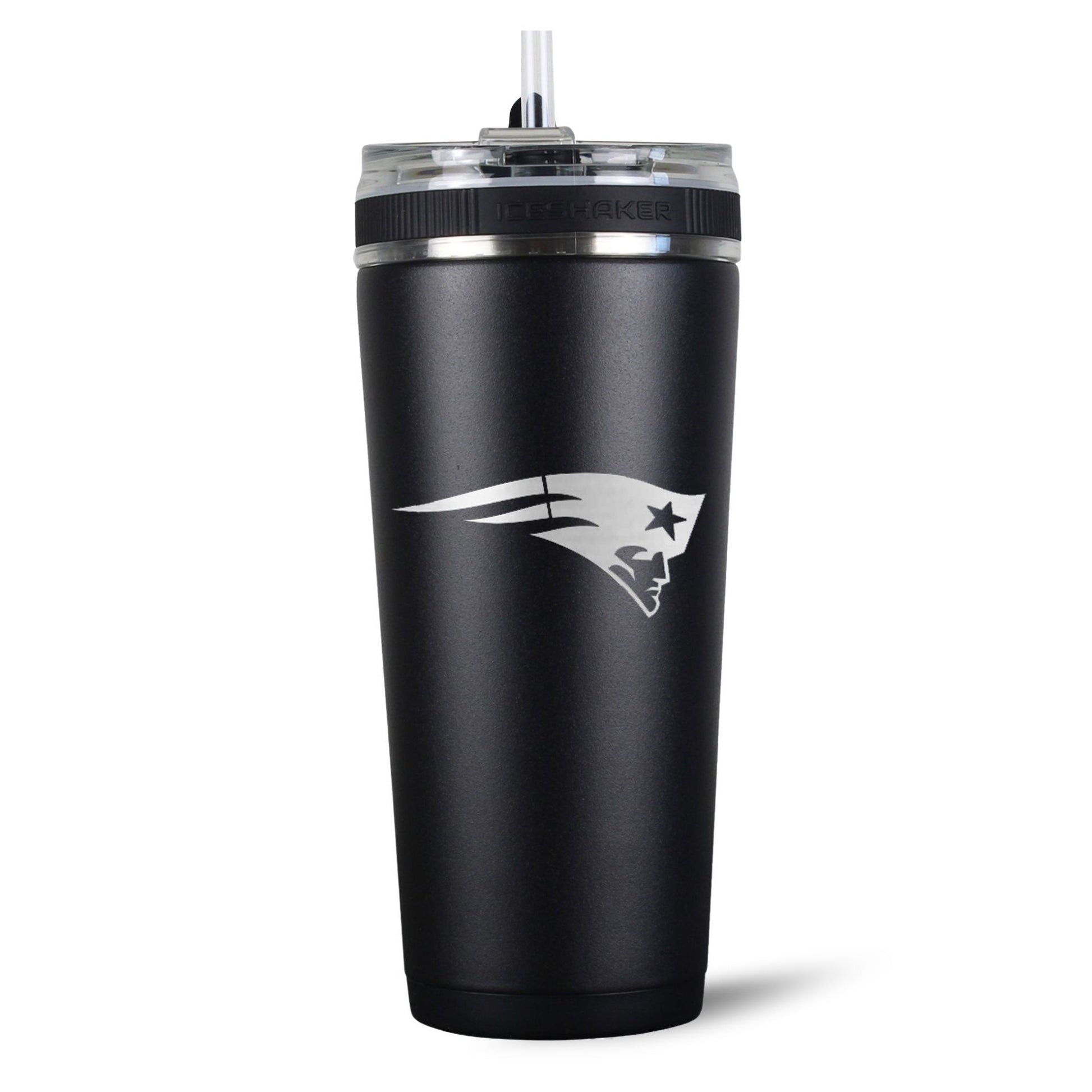 • New England Patriots logo engraved on back of bottle
